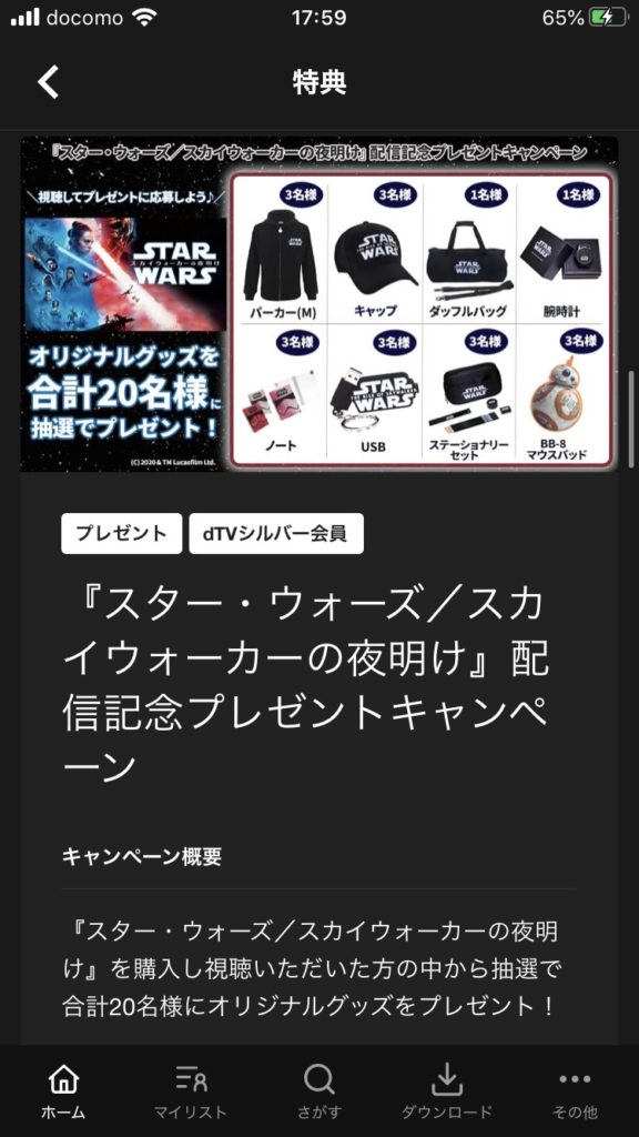 また一部の有料作品を購入するとその作品のグッズが抽選でもらえるようになります。ファンの方には嬉しいですよね。これだけの豪華な会員特典があるのはどのVODと比較してもありません。